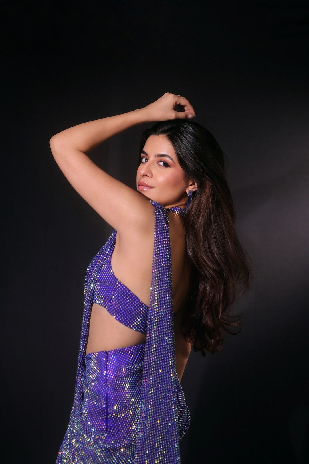 This pre-stitched piece is perfect for a cocktail night or sangeet evening!