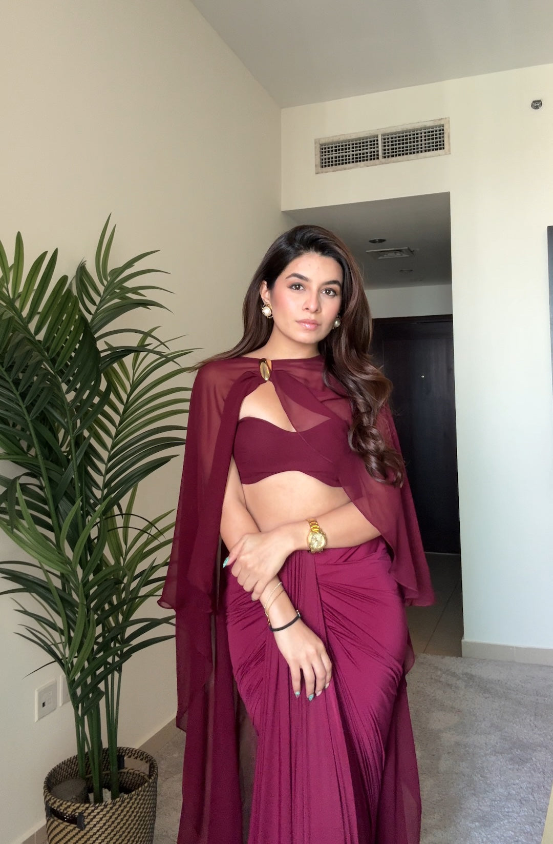 A super simple look that’s elegant, black tie appropriate while having a beautiful balance of Indian and western elements. Embroidery simply wasn’t needed because this experimental silhouette can be worn in so many ways and makes quite the statement in the most subtle way possible.